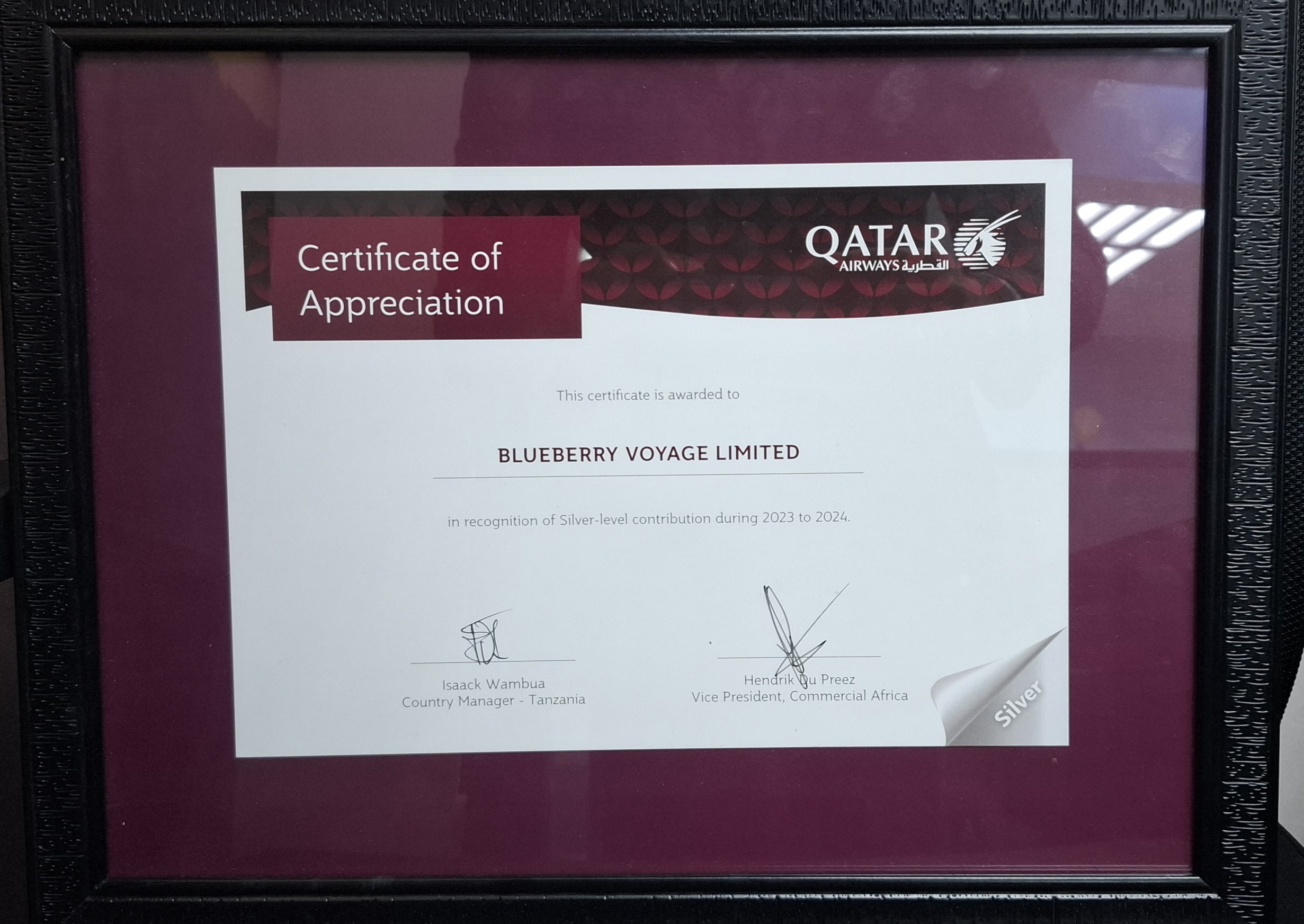 » CERTIFICATE OF APPERICIATION FROM QATAR AIRWAYS 2023-2024
